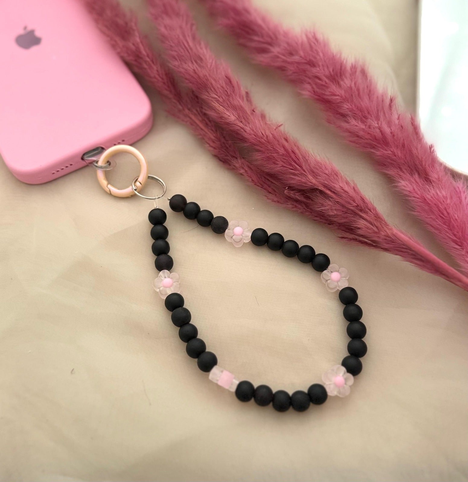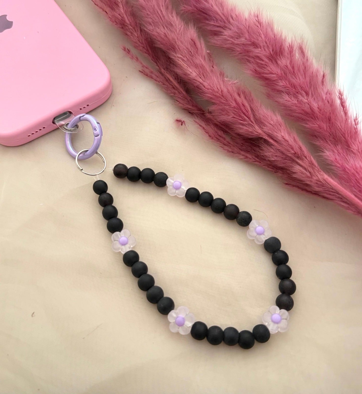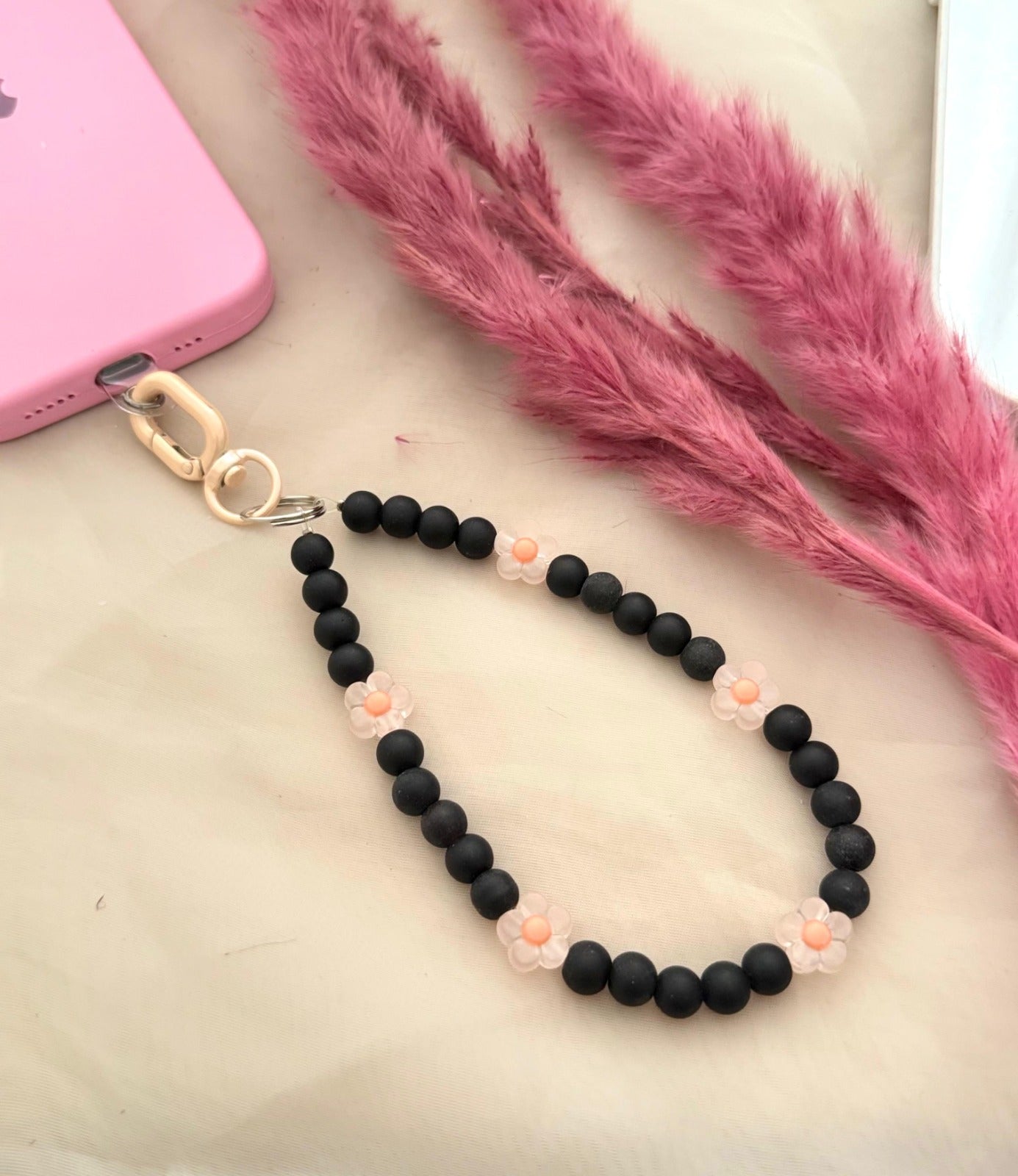 Matt Black Beads Pastel Flower Phone Hanging