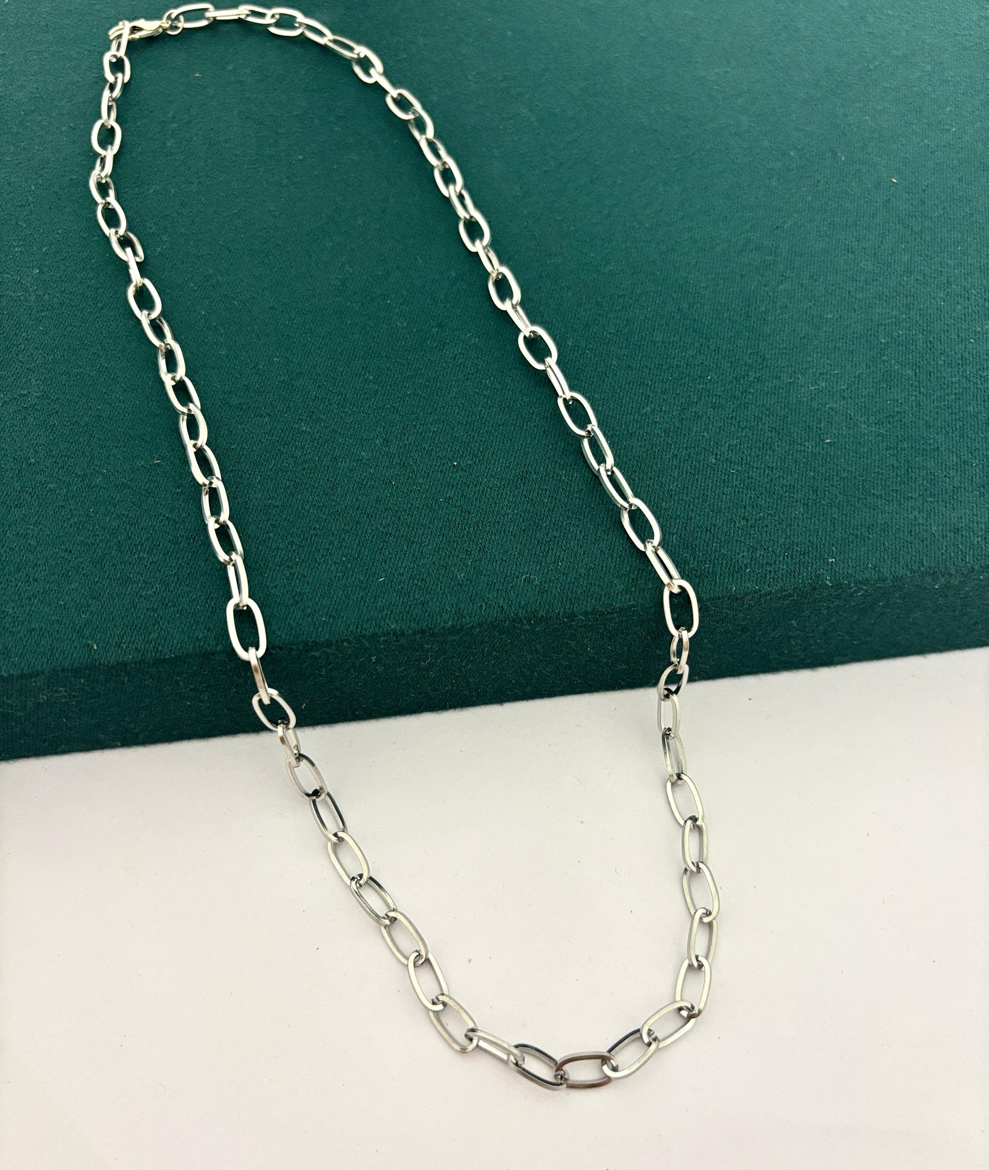 Cuban Link Silver Men Chain Necklace (Stainless Steel)
