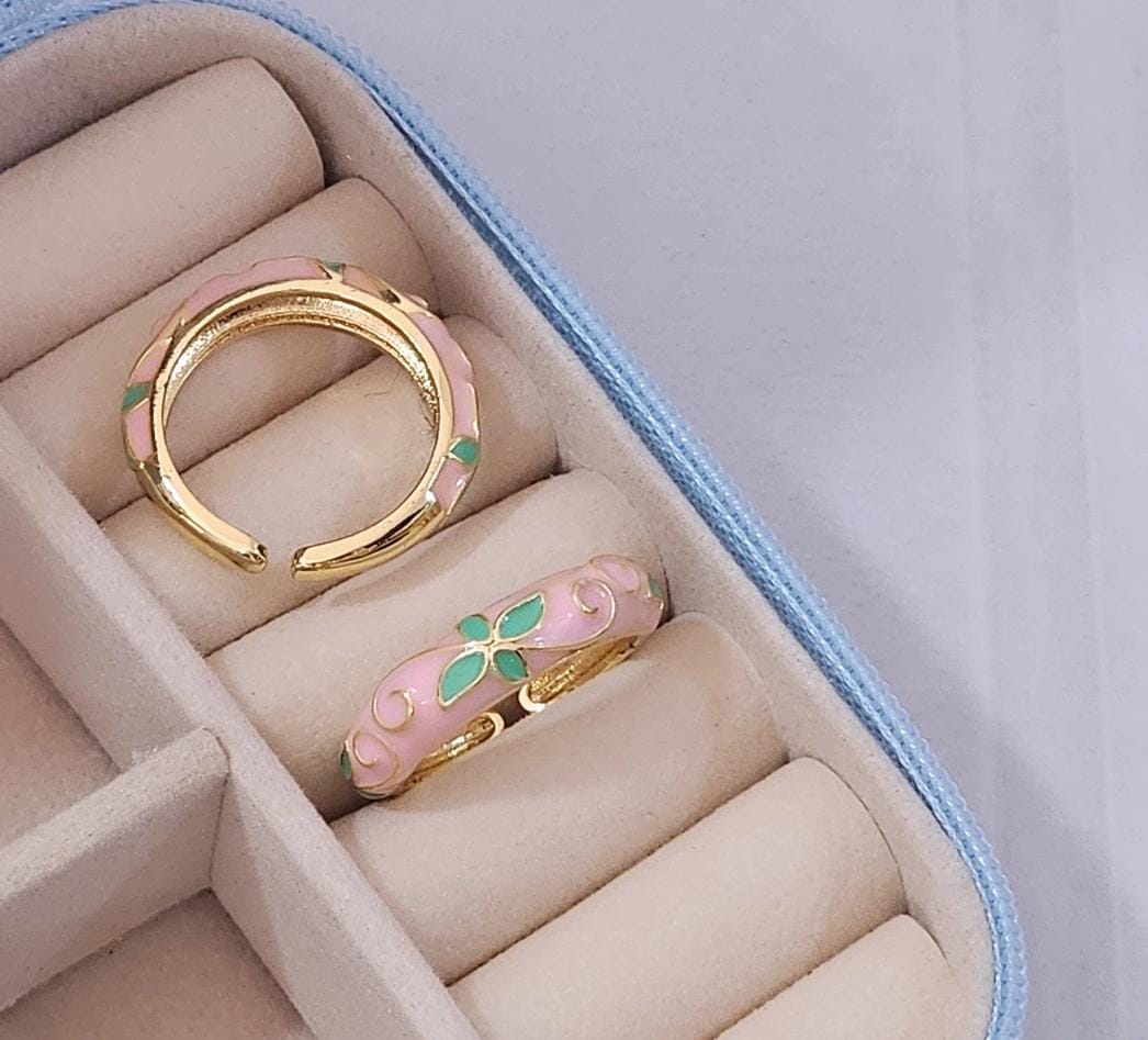 Crafted with precision, this enamel ring is a vibrant blend of artistry and elegance. The smooth, glossy enamel finish brings a striking pop of color, while the sleek band design ensures both comfort and sophistication. Its durable enamel coating resists fading and tarnishing, making it a long-lasting addition to your jewelry box. Perfect for stacking or wearing solo, this ring transitions effortlessly from casual daytime looks to refined evening styles. A chic balance of modern charm and timeless appeal, it’s a must-have accessory for every jewelry lover.