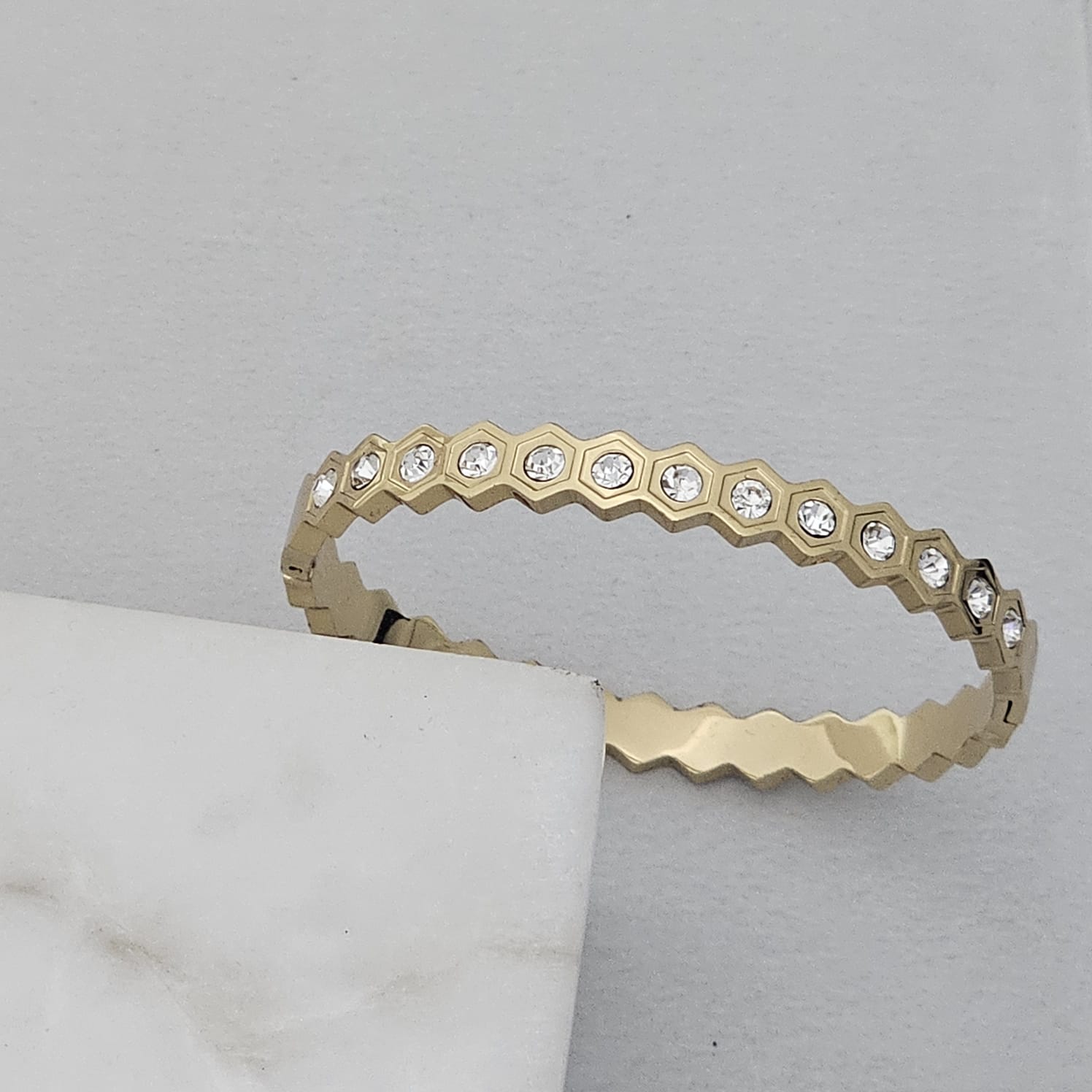 Golden Hexagon Diamond Bracelet (Anti Tarnish) (Small Size)