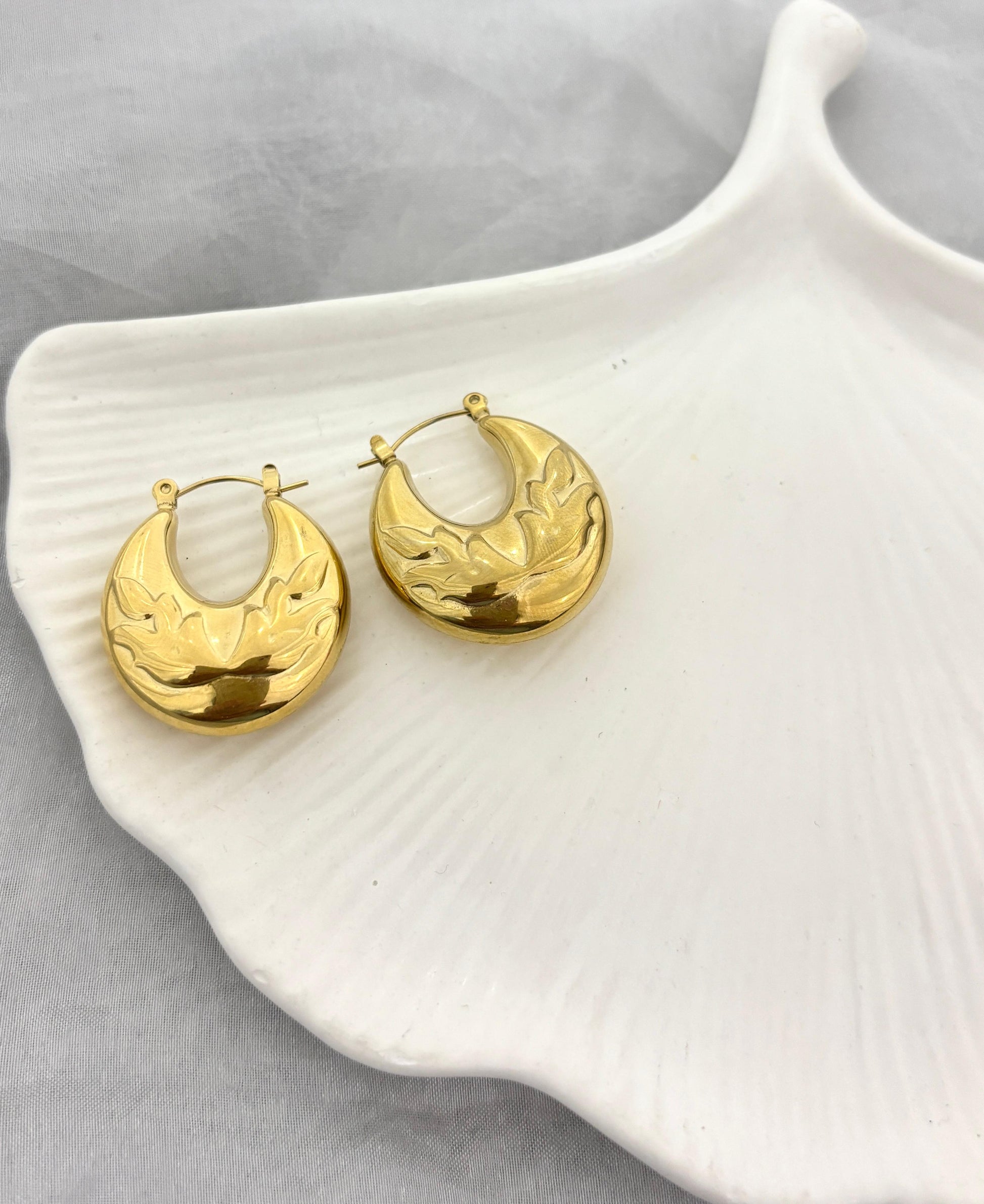 Leafy Big Hoops Golden Earrings (Anti Tarnish)
