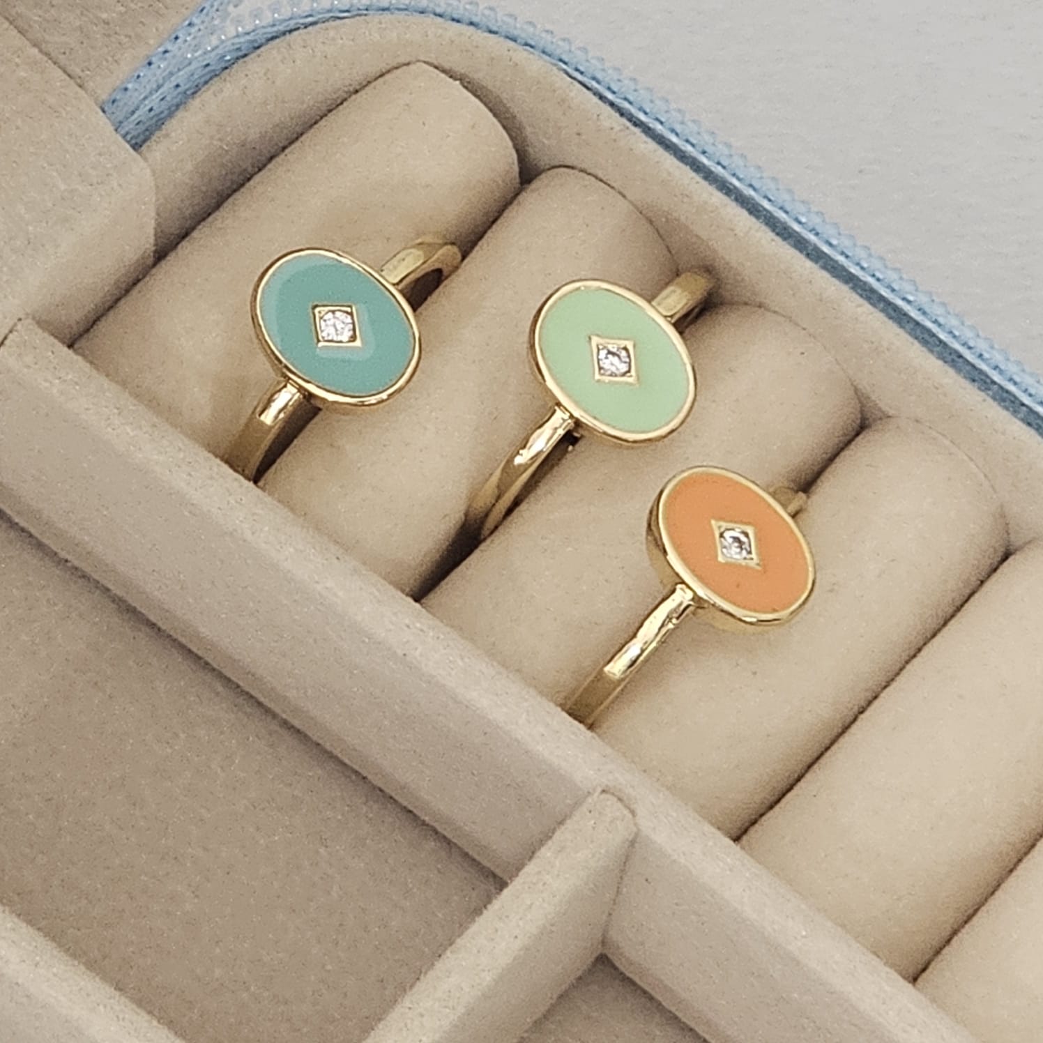 Crafted with precision, this enamel ring is a vibrant blend of artistry and elegance. The smooth, glossy enamel finish brings a striking pop of color, while the sleek band design ensures both comfort and sophistication. Its durable enamel coating resists fading and tarnishing, making it a long-lasting addition to your jewelry box. Perfect for stacking or wearing solo, this ring transitions effortlessly from casual daytime looks to refined evening styles. A chic balance of modern charm and timeless appeal, it’s a must-have accessory for every jewelry lover.