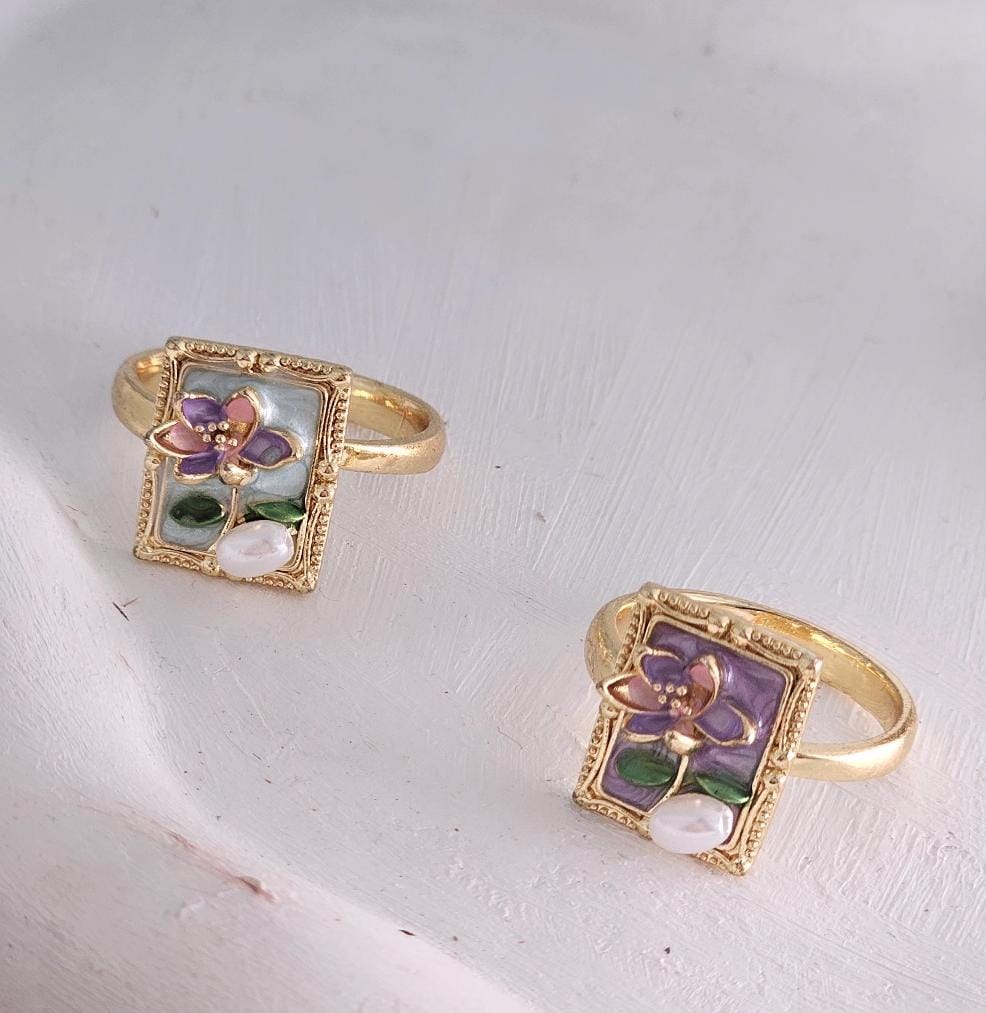 Pearl Flower Vintage Frame Ring (Adjustable)