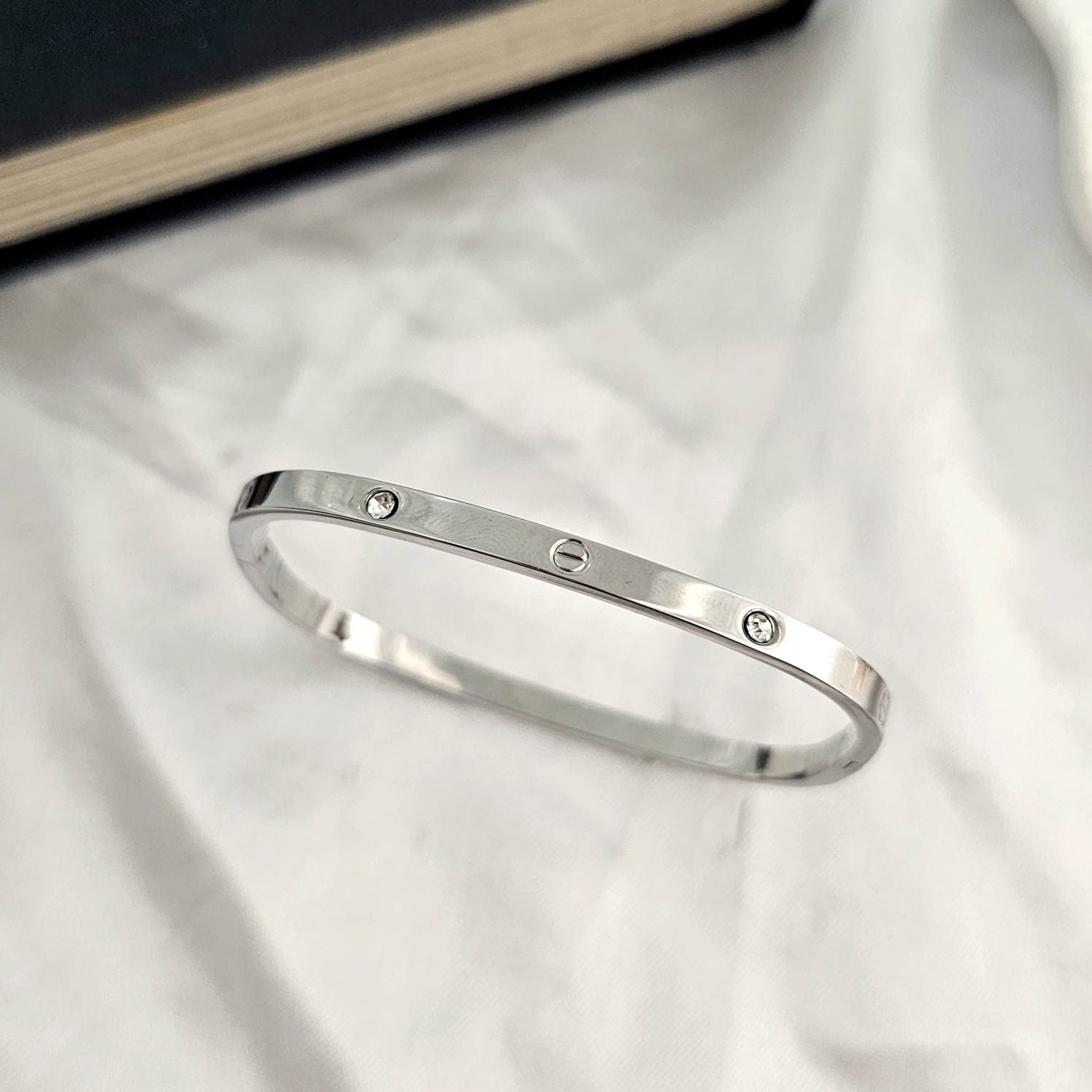 Silver Thin Square Cartier Women Kada Bracelet (Anti Tarnish)