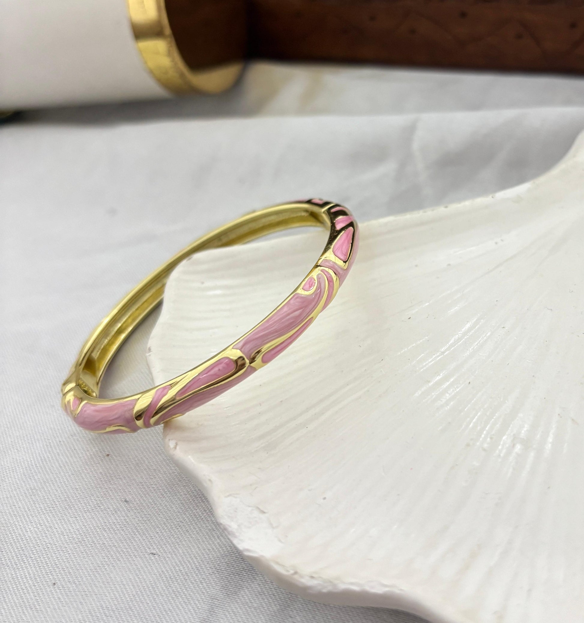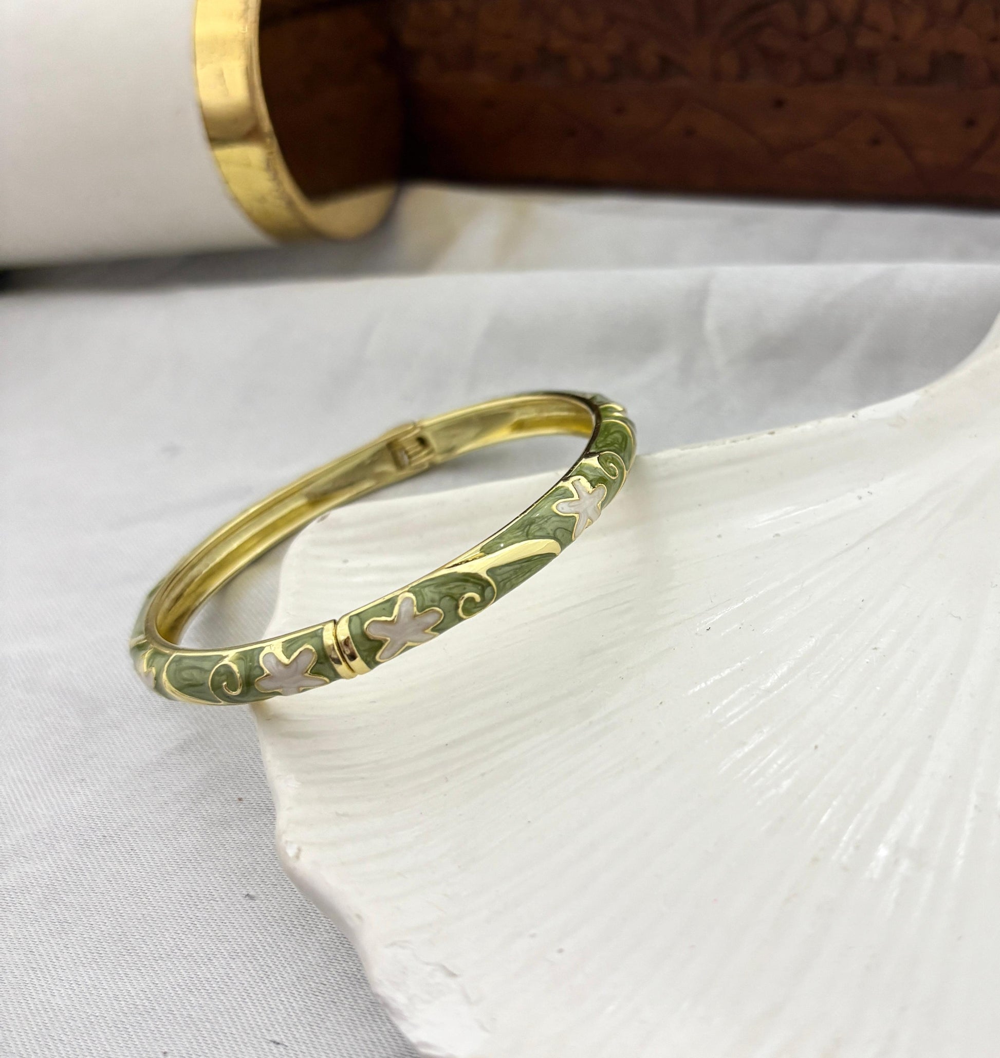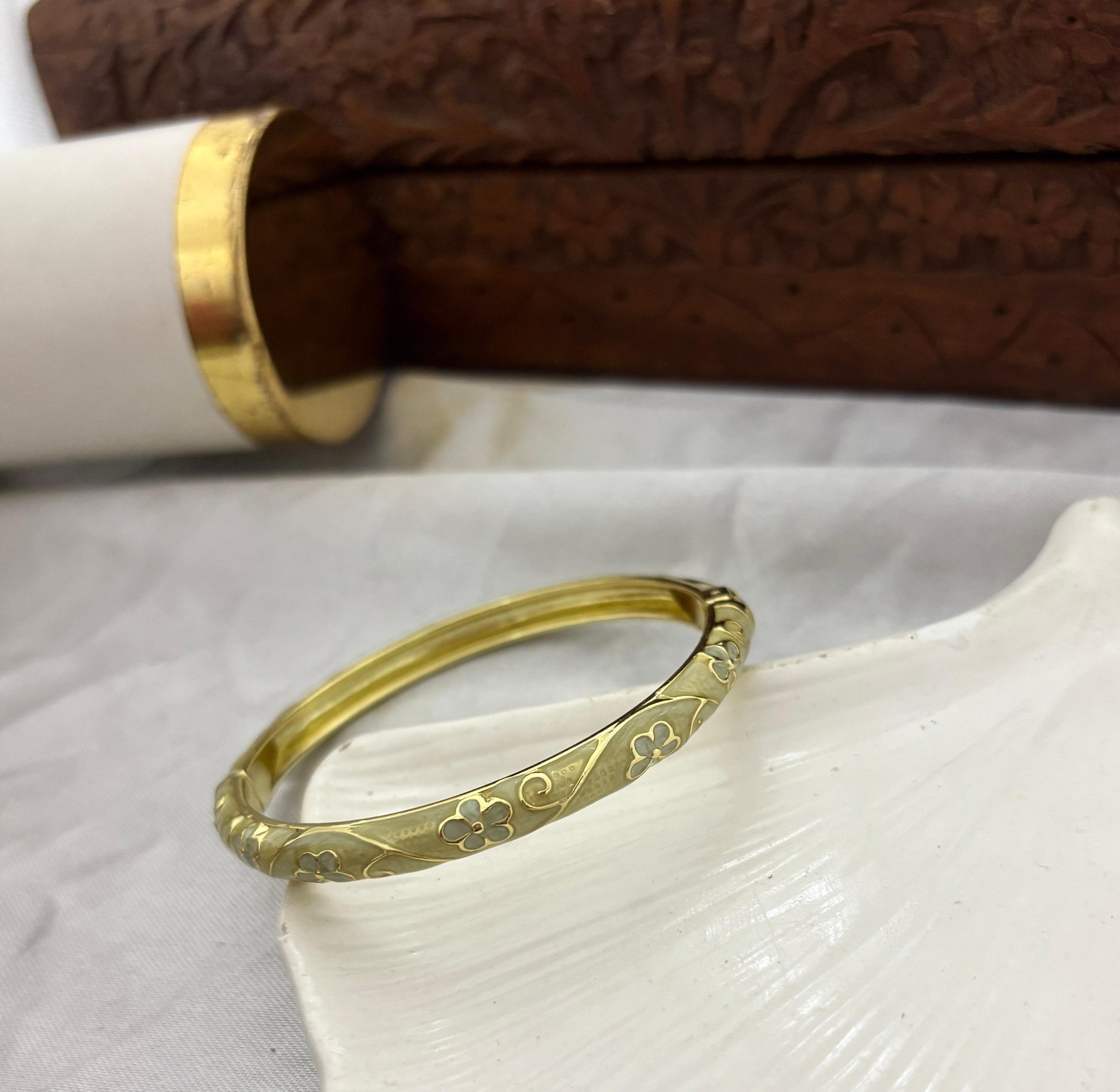 Women Anti Tarnish Enamel Floral Openable Kada Bracelet